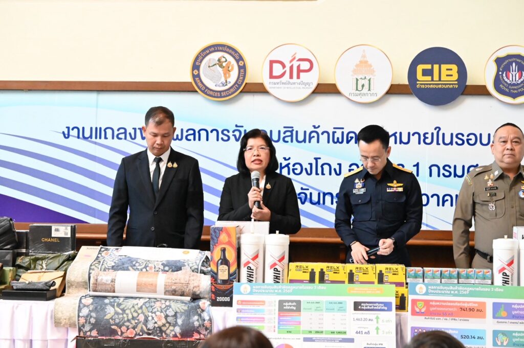 นายพันธ์ทอง ลอยกุลนันท์ อธิบดีกรมศุลกากร แถลงข่าวผลการจับกุมสินค้าผิดกฎหมายที่สำคัญในรอบสามเดือน ปีงบประมาณ พ.ศ. 2569 มูลค่ากว่า 1,600 ล้านบาท โดยมี นางอรมน ทรัพย์ทวีธรรม อธิบดีกรมทรัพย์สินทางปัญญา พล.ต.ท.ณัฐศักดิ์ เชาวนาศัย ผู้บัญชาการตำรวจสอบสวนกลาง (CIB) พล.ต.ท.อาชยน ไกรทอง ผู้บัญชาการตำรวจปราบปรามยาเสพติด (บช.ปส.) นายพีรพงศ์ รำพึงจิตต์ ผู้อำนวยการส่วนปฏิบัติการข่าวและปราบปรามยาเสพติด 6 คณะกรรมการป้องกันและปราบปรามยาเสพติด (ปปส.) และ พ.อ. กอบปิติ ถาวรพฤกษ์ ผู้อำนวยการกอง 12 สำนักปฏิบัติการข่าว ศูนย์รักษาความปลอดภัย กองบัญชาการกองทัพไทย (ศรภ.) เข้าร่วมในการแถลงข่าวครั้งนี้ ณ ห้องโถง อาคาร 1 กรมศุลกากร