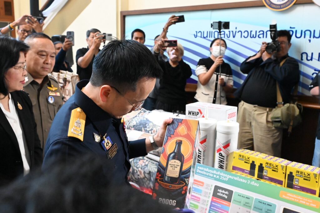 ของประชาชนในสังคมเป็นอย่างมาก โดยกรมศุลกากรได้บูรณาการการดำเนินงานร่วมกับกองบัญชาการตำรวจสอบสวนกลาง ในการเข้าตรวจค้นบ้านในพื้นที่อำเภอกระทุ่มแบน จังหวัดสมุทรสาคร จนสามารถจับกุมบุหรี่ไฟฟ้า หัวน้ำยาบุหรี่ไฟฟ้า และอื่น ๆ จำนวนกว่า 180,000 ชิ้น มูลค่ากว่า 41 ล้านบาทได้เป็นผลสำเร็จ ในช่วง 3 เดือนที่ผ่านมา สามารถจับกุมบุหรี่ไฟฟ้าได้แล้วเป็นจำนวน 414,974 ชิ้น มูลค่า 65 ล้านบาท รวมถึงสามารถจับกุมบุหรี่มวนได้ถึง 49 คดี มูลค่ารวม 41 ล้านบาท จำนวนรวม 5.3 ล้านมวน นอกจากนี้ ยังได้มีการตรวจพบและจับกุมก๊าซไนตรัสออกไซด์ หรือที่รู้จักกันในชื่อ ก๊าซหัวเราะ (Happy Gas) บรรจุในกระบอกอัดแรงดันสูง ปริมาณ 5,184 กระบอก (กระบอกละ 5 กิโลกรัม) มูลค่าความเสียหาย