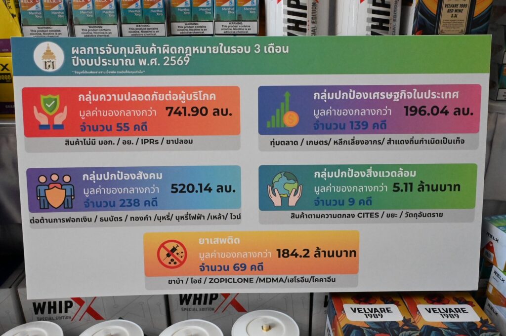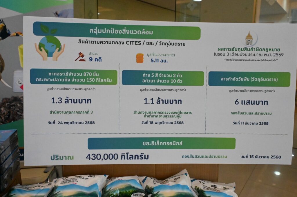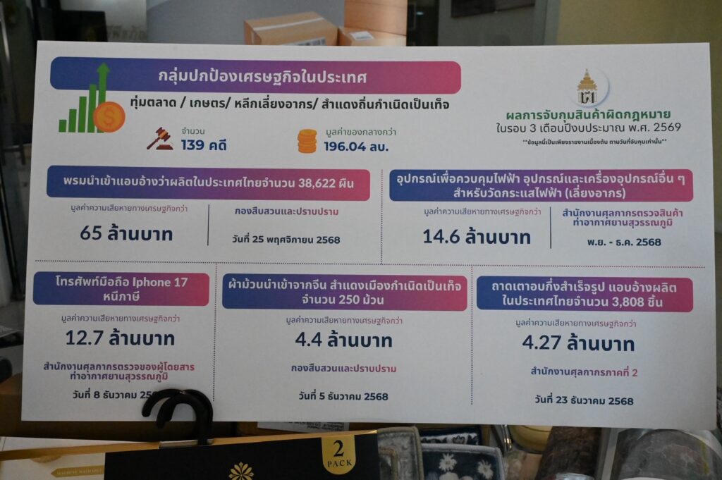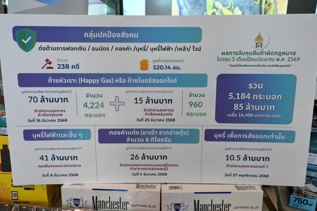 กรมศุลกากรแถลงข่าวผลการจับกุมสินค้าผิดกฎหมายที่สำคัญในรอบสามเดือน ปีงบประมาณ พ.ศ. 2569 มูลค่ากว่า 1,650 ล้านบาท