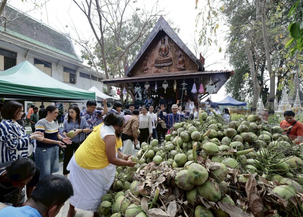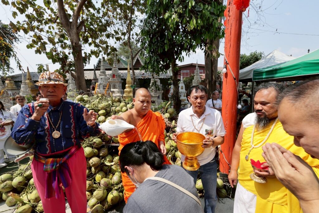 …วัดท่าผา…แทบแตก…อาจารย์พระมหารุ่งธรรม รดน้ำพุทธมนต์ด้วยพระมหาสังข์ให้กับทุก ๆ ท่านที่อยู่ในพิธี ยิ่งใหญ่เหนือคำบรรยาย ประชาชนทั้งในประเทศและต่างประเทศได้ร่วมกันเป็นเจ้าภาพถวายมะพร้าวน้ำหอมปลอดสารพิษ จำนวน 2,000 ลูก เพื่อเป็นงานมหาบุญ มหากุศล มหาทาน