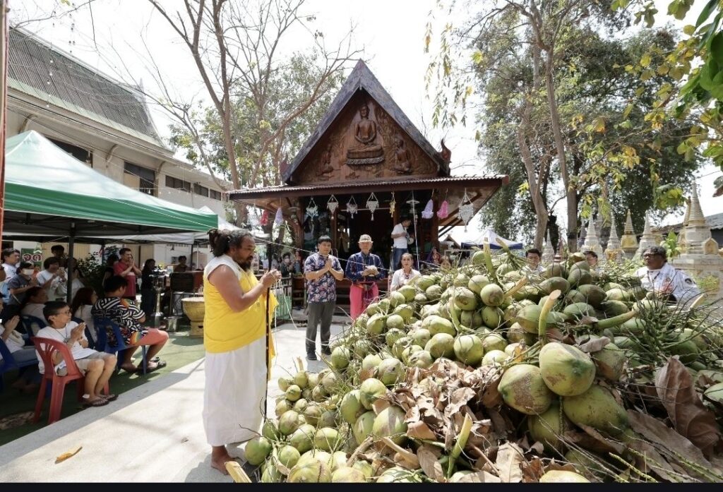 วัดท่าผา…แทบแตก…อาจารย์พระมหารุ่งธรรม รดน้ำพุทธมนต์ด้วยพระมหาสังข์ให้กับทุก ๆ ท่านที่อยู่ในพิธี ยิ่งใหญ่เหนือคำบรรยาย ประชาชนทั้งในประเทศและต่างประเทศได้ร่วมกันเป็นเจ้าภาพถวายมะพร้าวน้ำหอมปลอดสารพิษ จำนวน 2,000 ลูก เพื่อเป็นงานมหาบุญ มหากุศล มหาทาน
