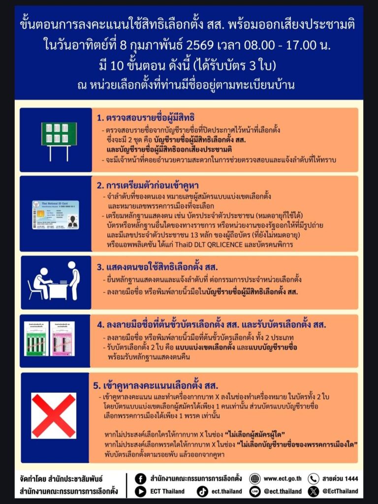 สำหรับกำหนดการเลือกตั้ง กกต. กำหนดให้มีการเลือกตั้งสมาชิกสภาผู้แทนราษฎรและการออกเสียงประชามติ ในวันอาทิตย์ที่ 8 กุมภาพันธ์ 2569 เวลา 08.00–17.00 น. ณ หน่วยเลือกตั้งตามทะเบียนบ้าน และกำหนดวันใช้สิทธิเลือกตั้งล่วงหน้าในเขตและนอกเขตเลือกตั้งในวันที่ 1 กุมภาพันธ์ 2569 โดยประชาชนสามารถตรวจสอบข้อมูลผู้มีสิทธิ หน่วยเลือกตั้ง และขั้นตอนการใช้สิทธิได้ผ่านแอปพลิเคชัน SMART VOTE