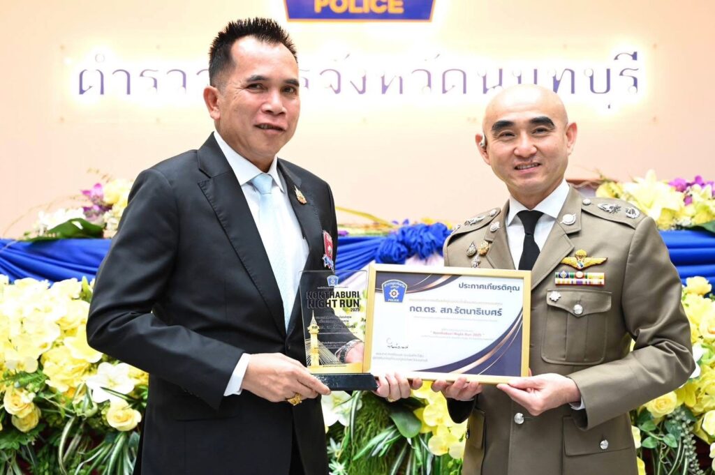 ได้มอบโล่เกียรติยศและใบประกาศเกียรติคุณ ผู้ให้การสนับสนุนกิจกรรมเดิน-วิ่ง การกุศล NONTHABURI NIGHT RUN 2025 แก่ ดร.แก้ว,ดร.พีรวัฒน์ และ คณะกต.ตร.จว.นนทบุรีและที่ปรึกษารวมถึงผู้ให้การสนับสนุนการจัดงาน อีกด้วย