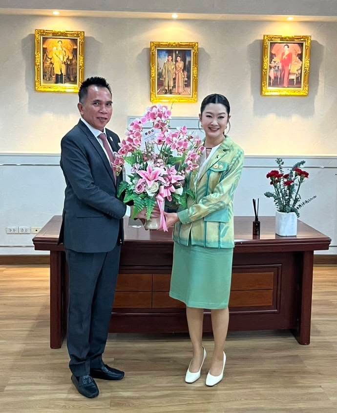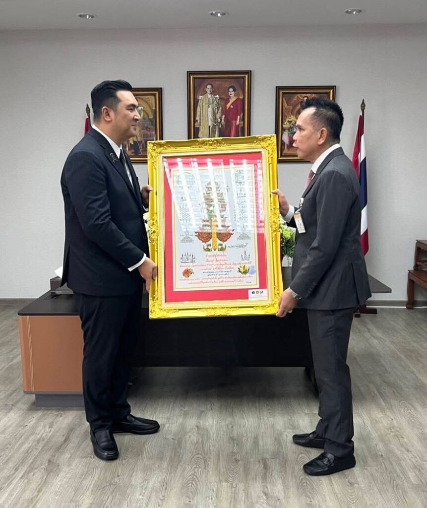”ดร.แก้ว“ เข้าแสดงความยินดีพร้อมมอบของที่ระลึก ผ้ายันต์ท้าวเวสสุวรรณ ให้กับรัฐมนตรีช่วยว่าการกระทรวงเกษตรและสหกรณ์