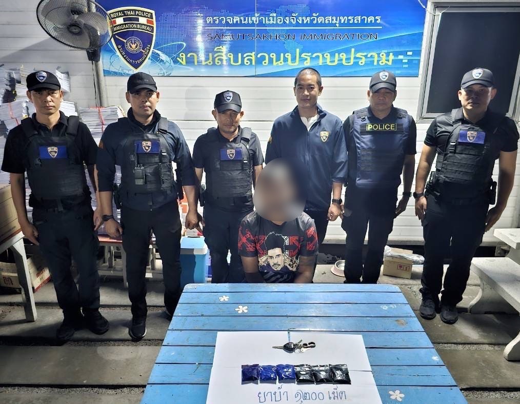 พ.ต.อ.สุเมธฯ เปิดเผยว่า การจับกุมครั้งนี้เป็นส่วนหนึ่งของมาตรการกวาดล้างเครือข่ายยาเสพติดและอาชญากรรมข้ามชาติที่แฝงตัวเข้ามาในกลุ่มแรงงานต่างด้าว โดย ตม.จว.สมุทรสาคร มีการตรวจสอบเชิงลึก สืบสวนขยายผล และบังคับใช้กฎหมายอย่างเข้มงวด จนนำไปสู่การจับกุมตัว Mr. Chit อายุ 38 ปี สัญชาติเมียนมา ในข้อหา “จำหน่ายโดยมีไว้ในครอบครองเพื่อจำหน่ายซึ่งยาเสพติดให้โทษประเภท 1 (ยาบ้า) โดยไม่ได้รับอนุญาต” พร้อมของกลางยาบ้าเม็ดกลมแบน สีส้ม ประทับอักษร “WY” บรรจุในถุงซิปล็อก จำนวน 6 ถุง ถุงละ 200 เม็ด รวม 1,200 เม็ด เจ้าหน้าที่ได้แจ้งข้อกล่าวหาและสิทธิ์ผู้ต้องหาตามกฎหมายครบถ้วน ก่อนควบคุมตัวพร้อมของกลาง นำส่งพนักงานสอบสวน สภ.โคกขาม เพื่อดำเนินคดีตามกฎหมาย