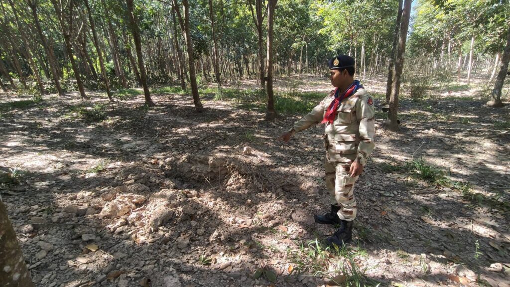 จึงพาเจ้าหน้าที่เข้าไปสำรวจพื้นที่ที่ต้องสงสัยว่าน่าจะมีลูกจรวดหรือลูกปืนใหญ่ตกเข้ามาเพราะวิถีการยิงของเขมรจะพุ่งเป้ามาใส่พลเรือนของไทย ปรากฏว่าพบลูกปืนครก ตกใส่ไร่ยางพาราของชาวบ้านเป็นจำนวนมากและที่ยังไม่รู้ว่าตกจุดไหนอีกซึ่งจะต้องเข้าไปสำรวจหากสถานการณ์สงบลง จากข้อมูลที่ได้รับในตอนนี้มีหลายจุดใน อ.ประโคนชัย ที่มีลูกปืนครกตกมาใส่ในชุมชน/////////////