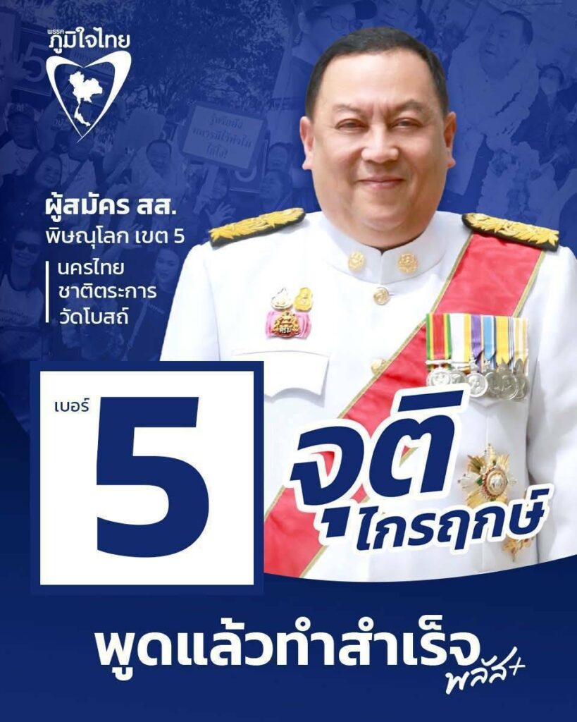 นายจุติ ไกรฤกษ์ ผู้สมัคร สส.พิษณุโลก เขต 5 พรรคภูมิใจไทย เบอร์ 5 ชี้แจงกรณีมีสื่อโซเชียล ออกโพสต์มาพาดพิงว่า เป็นคลังกระสุนดินดำให้กับ ดร.จักษ์ พันธ์ชูเพชร ผู้สมัคร สส.พิษณุโลก เขต 1 พรรคภูมิใจไทย เบอร์ 2 ซึ่งไม่เป็นความจริง เพราะสภาพแวดล้อมเขตเลือกตั้งที่ 1 กับ เขต 5 แตกต่างกันอย่างสิ้นเชิง ดังนั้นทุกคนต้องพึ่งตนเอง