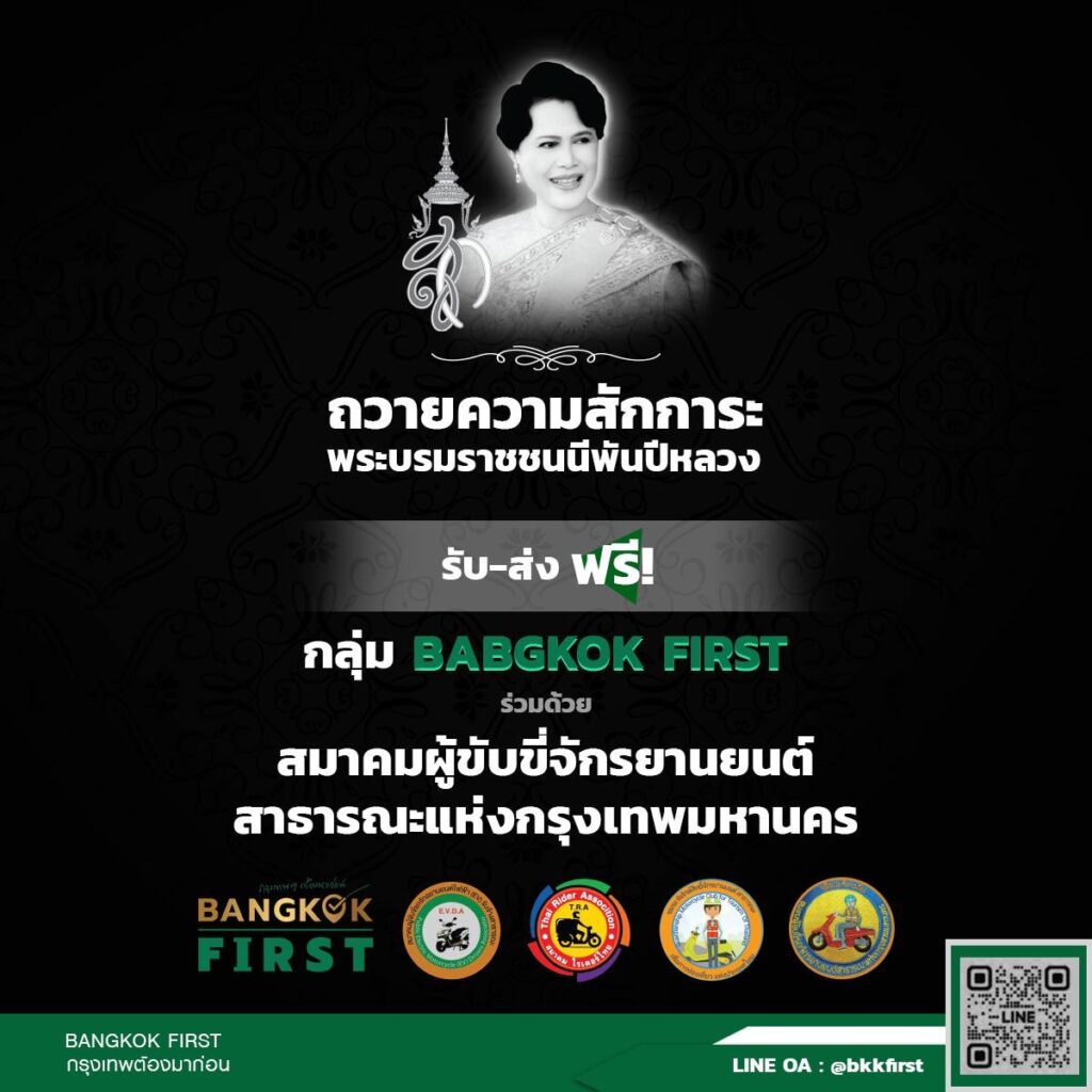 กลุ่มแบงคอกเฟิร์ส ร่วมกับ สมาคมวินจักรยานยนต์ ขอเป็นส่วนหนึ่งในการอำนวยความสะดวกแก่พี่น้องประชาชนที่ตั้งใจเดินทางไปถวายสักการะ พระบรมราชชนนีพันปีหลวง ณ พระบรมมหาราชวังและท้องสนามหลวง