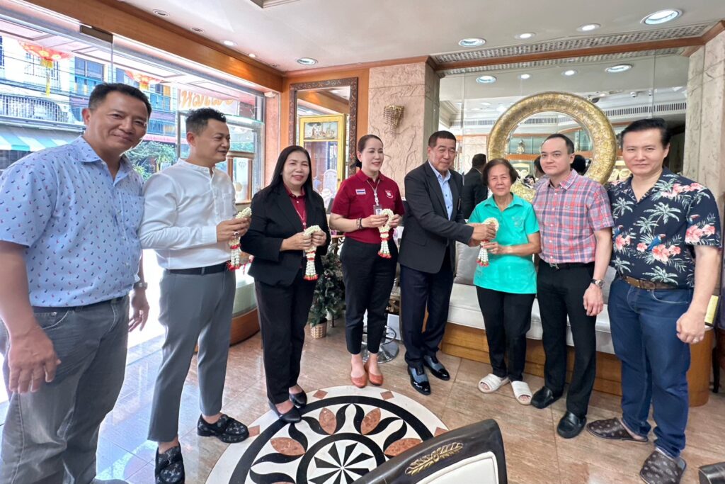 ท่าน พ.ต.ท.ปรีชา อับดุลเลาะห์ ประธานชมรมผู้ไกล่เกลี่ย สำนักงานตำรวจแห่งชาติ พร้อมคณะกรรมการและที่ปรึกษาชมรมฯ ให้เกียรติเข้าอวยพร แด่ ดร.นฤมล สุรเศรษฐ ประธานกรรมการ L.S.Jewelry Group เนื่องในเทศกาลสงกรานต์ โดยมี ดร.พีรวัฒน์ – ดร.ธัชวิน สุรเศรษฐ ประธานที่ปรึกษาชมรมผู้ไกล่เกลี่ยฯ