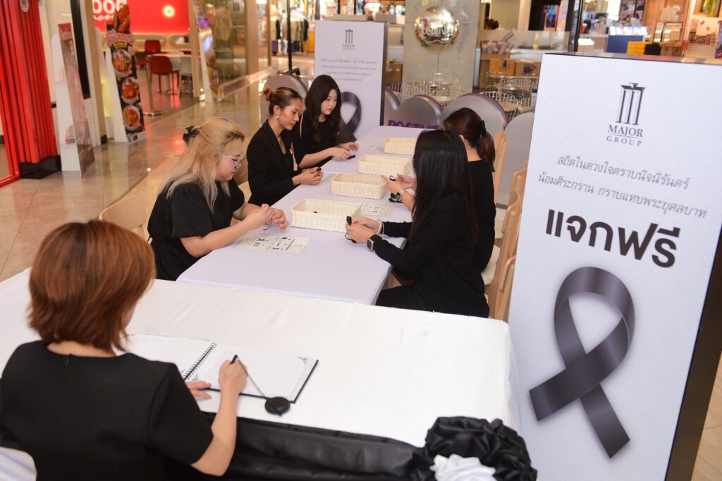 โอกาสนี้ เมเจอร์ ซีนีเพล็กซ์ กรุ้ป ได้จัดตั้ง โต๊ะหมู่ประดิษฐานพระฉายาลักษณ์ บริเวณด้านหน้าอาคาร เพื่อเปิดโอกาสให้พนักงาน ผู้ประกอบการร้านค้า และประชาชนทั่วไป ได้ร่วมลงนามแสดงความอาลัยถวายแด่พระองค์ท่าน และร่วมจัดทำ “ริบบิ้นไว้อาลัย” เพื่อแจกจ่ายแก่ประชาชนคนไทยในการแสดงความอาลัยและน้อมรำลึกถึงพระมหากรุณาธิคุณอันยิ่งใหญ่ของสมเด็จพระพันปีหลวง