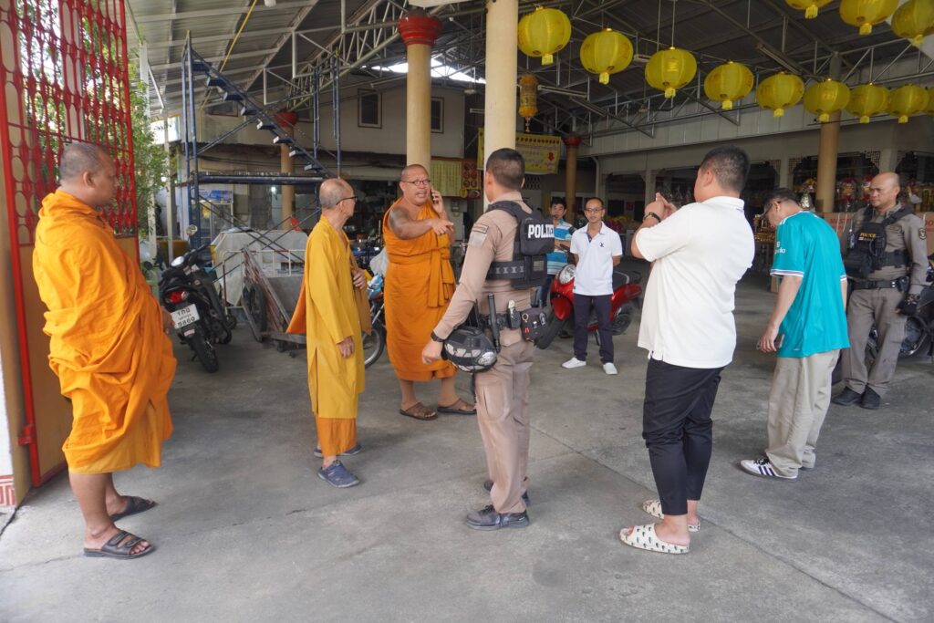 นายเอ๋ (นามสมมติ) อายุ 36 ปี เจ้าหน้าที่มูลนิธิเป๋าเก็งเต็ง ซอยบริพัตร บอกว่าเพิ่งเคยเห็นนายเรืองชัย เข้ามาที่ศาลเจ้าจีนในวันนี้ซึ่งปกติจะไม่มีคนพลุกพล่าน แต่วันนี้ได้มีการรวมตัวกันของเจ้าหน้าที่เพื่อเตรียมตัวในการเข้าสู่ช่วงเทศกาลถือศีลกินเจ ซึ่งที่นี่จะมีคนเข้ามาเป็นจำนวนมากเพราะประตูไม่ได้ปิด คาดว่านายเรืองชัยน่าจะขับขี่รถจักรยานยนต์โดยแต่งกายเป็นชุดปกติทั่วไปก่อนจะมาเปลี่ยนเป็นชุดพระจีนแล้วเดินออกไปขอข้าวกินที่บริเวณถนนเทศา ซอย 1 ก่อนจะมีหลวงพี่น้ำฝนและตำรวจเข้ามาติดตามจับกุม และตนเองจำได้ว่าเขาเคยถูกจับเรื่องการแต่งกายเป็นพระและเป็นพระอาศัยอยู่ที่บ้านมาแล้ว ไม่คิดว่าจะมาถึงสถานที่แห่งนี้อีก