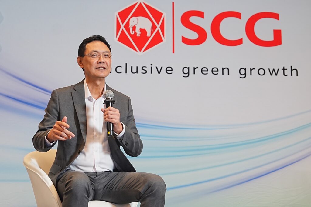 นายธรรมศักดิ์ กล่าวทิ้งท้ายว่า “แม้สถานการณ์สงครามการค้าจะยังไม่แน่นอน เอสซีจี เชื่อมั่นว่ากลยุทธ์ที่ชัดเจน การปรับตัวที่รวดเร็ว และความทุ่มเทของทีมงานทุกกลุ่มธุรกิจ จะช่วยรักษาความแข็งแกร่งทางการเงินและความสามารถทางการแข่งขันขององค์กรไว้ได้ อีกทั้งความร่วมมือกับพันธมิตรทั้งระบบนิเวศทางธุรกิจ ยังคงเป็นหัวใจสำคัญของการเติบโตอย่างยั่งยืน เอสซีจี จึงร่วมกับภาคส่วนต่าง ๆ จัดโครงการ ‘NZAP: Net Zero Accelerator Program’ และ ‘Go Together’ ต่อเนื่อง รวมทั้งจัด Leadership Forum ในงาน ‘ESG Symposium’ ช่วงสิงหาคม – ตุลาคม 2568 ซึ่งเชิญองค์กรชั้นนำระดับโลก เช่น สำนักงานประสานงานการพัฒนาแห่งสหประชาชาติ (DCO) สถาบันเทคโนโลยีแมสซาชูเซตส์ (MIT) รวมทั้งองค์กรชั้นนำระดับประเทศ เช่น ธนาคารแห่งประเทศไทย สถาบันวิจัยเพื่อการพัฒนาประเทศไทย (TDRI) และสมาพันธ์เอสเอ็มอีไทย มาร่วมหาแนวทางเพิ่มขีดความสามารถทางการแข่งขันให้ธุรกิจ ตลอดจนผลักดันการปรับโครงสร้างเศรษฐกิจไทยให้ขับเคลื่อนสู่สังคมคาร์บอนต่ำ (Green Transition) และพร้อมแข่งขันระดับโลกท่ามกลางความท้าทายต่าง ๆ ได้”